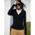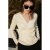 The V-neckline and shirred detailing add a touch of femininity, making it a versatile piece for both professional and casual settings. Available in classic apricot white and black, this sweater effortlessly complements any outfit, whether you’re dressing up for a business meeting or enjoying a relaxed weekend brunch.